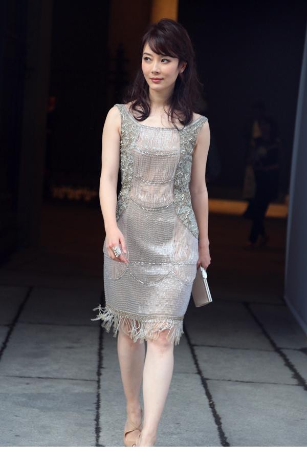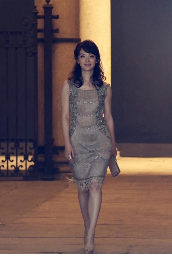 陈数米兰时装周裸色流苏裙展露东方女神风范